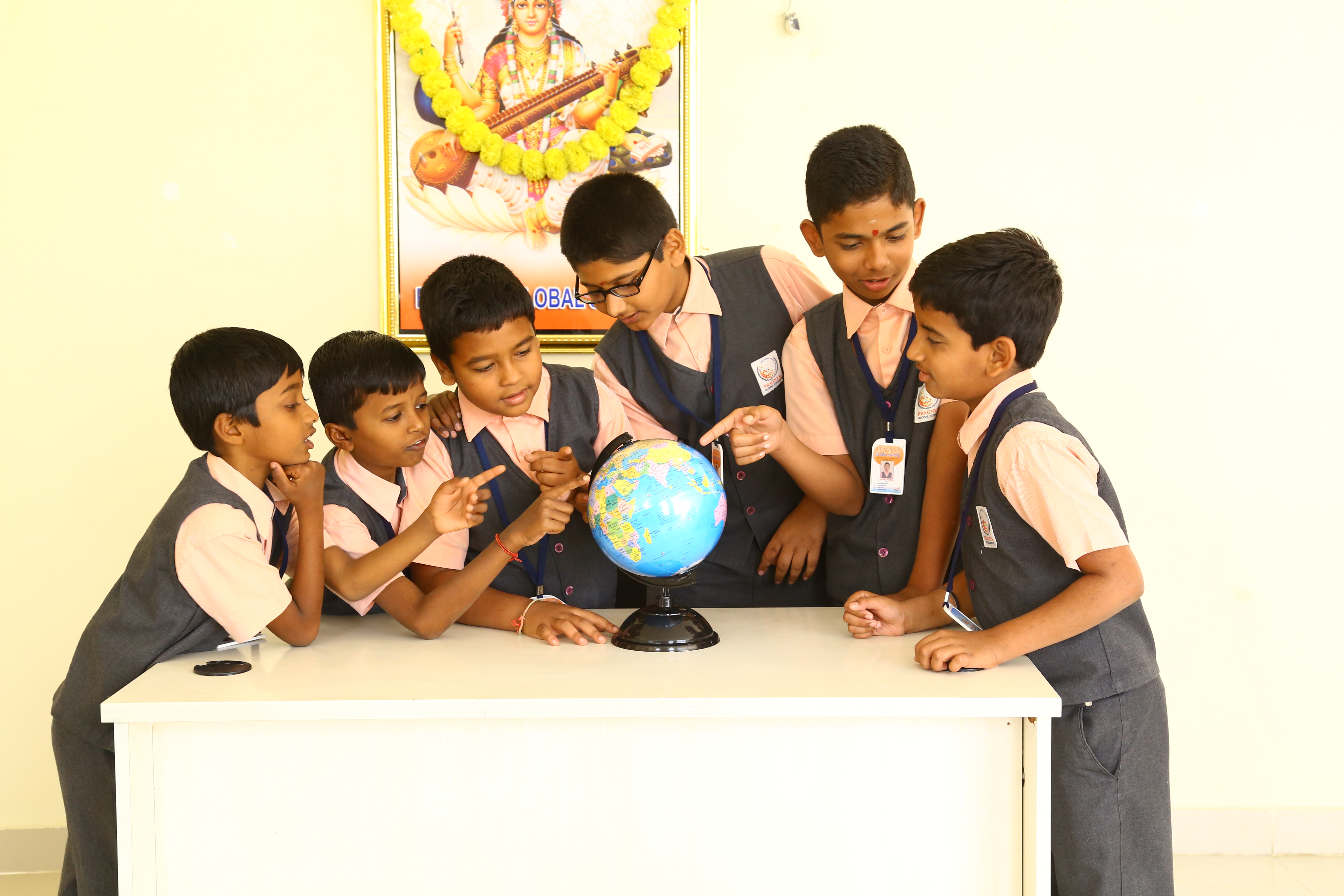 Classes I – V have been following the Continuous and Comprehensive Evaluation (CCE) method and this encourages the students to work equally on various aspects of their scholastic and co-scholastic skills. Technology is an integral part of the learning environment in every classroom. Every lesson is planned in detail and implemented in an innovative way based on Bloom’s Taxonomy, and caters to students with different learning styles. The multiple intelligences of students are assessed at the start of the session and these are used to help plan the lesson. The Primary Education module is designed to follow the axiom “Discovering the syllabus is more important than covering it”. We believe that the student should have mental access to assimilation along with physical access to learning. In accordance, the working schedules of classes I and II have been designed in such a way that they have ‘short respite’ periods after every 45 minutes of learning. This helps them to come back ready and refreshed for the next session of classroom learning. The concept of ‘classroom library’ (for classes I to V) gives the students direct access to books in their own classroom. Every day after assembly, 10 minutes of reading time enhances and enriches their language skills. Children idolize their teachers to capitalize on this. The primary school curriculum is based on the NCERT guidelines and focuses on laying the foundations of knowledge, skills and attitudes which will guide the young learners for life. At this stage too, the curriculum supports experiential learning, focuses on conceptual clarity by relating learning to everyday life, developing thinking and analytical skills. The curriculum also aims at nurturing the affective domain of the learners through subjects and activities which will help develop the basic life skills in the learner – self-awareness, effective communication skills and emotional strength. The pedagogy at this stage is not absolutely fixed, structured or prescribed but it is multi-dimensional and flexible, which gives the learner ample opportunities to explore and discover.